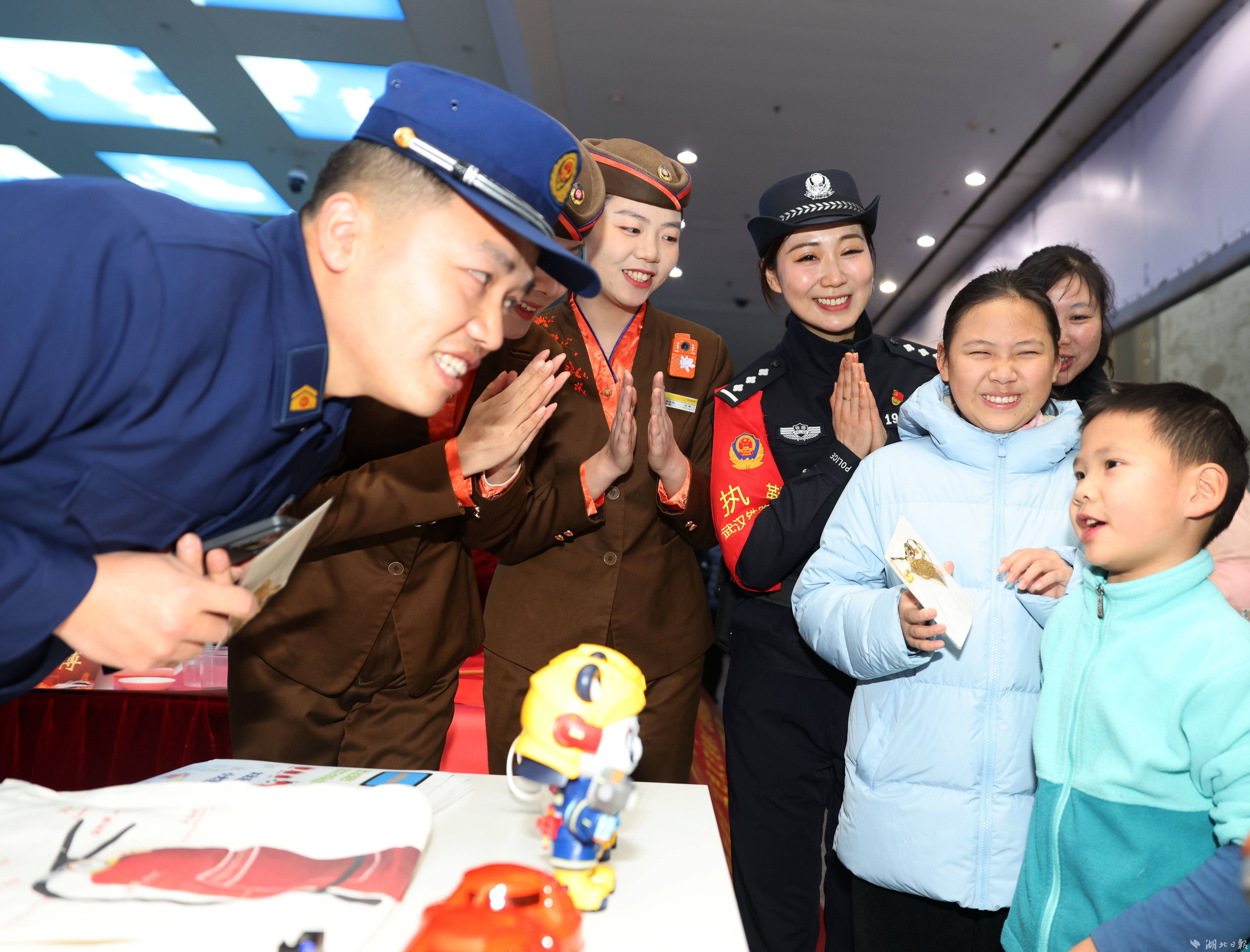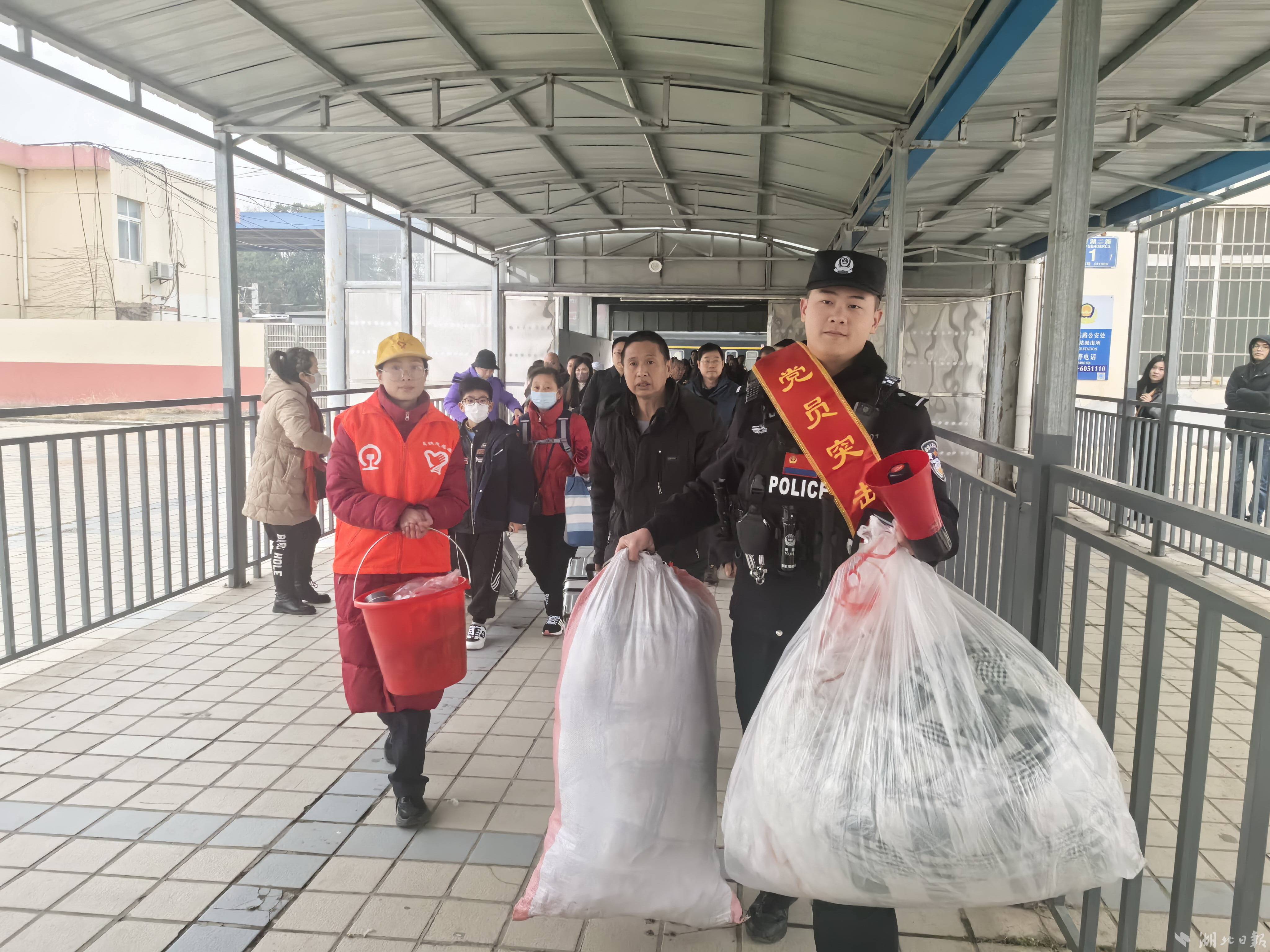 春运期间,武汉铁路公安局所属武汉、襄阳和麻城公安处加强对车站进出通道、重点场所和部位的清理,强化重点物品检查和线路重点区段、重点时段的巡查,提高见警率、管事率、管控力;督促铁路部门严格落实旅客、物品全覆盖安检措施。同时,广大民警立足岗位为民服务,开展志愿帮扶、法律咨询、携老爱幼以及防诈防骗防盗宣传等爱民实践活动。