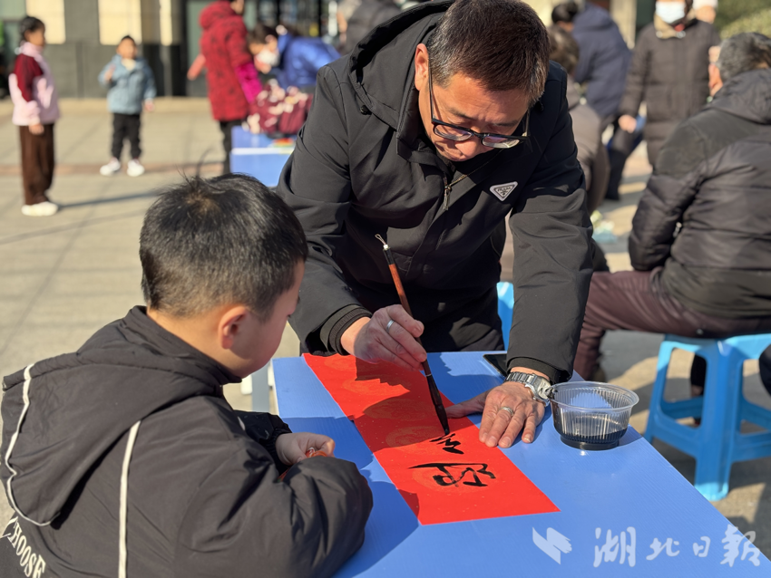 便民活动区同样人气满满。专业理发师为居民修剪头发,让他们以崭新形象迎接新年。磨刀师傅熟练操作工具,将一把把钝刀磨得锋利无比。书法爱好者挥毫泼墨,写下寓意吉祥的对联和“福”字。志愿者们则忙着冲洗地垫,并将一颗颗嫩绿的“百财”(白菜)送到居民手中,寓意新的一年财源广进、吉祥如意。