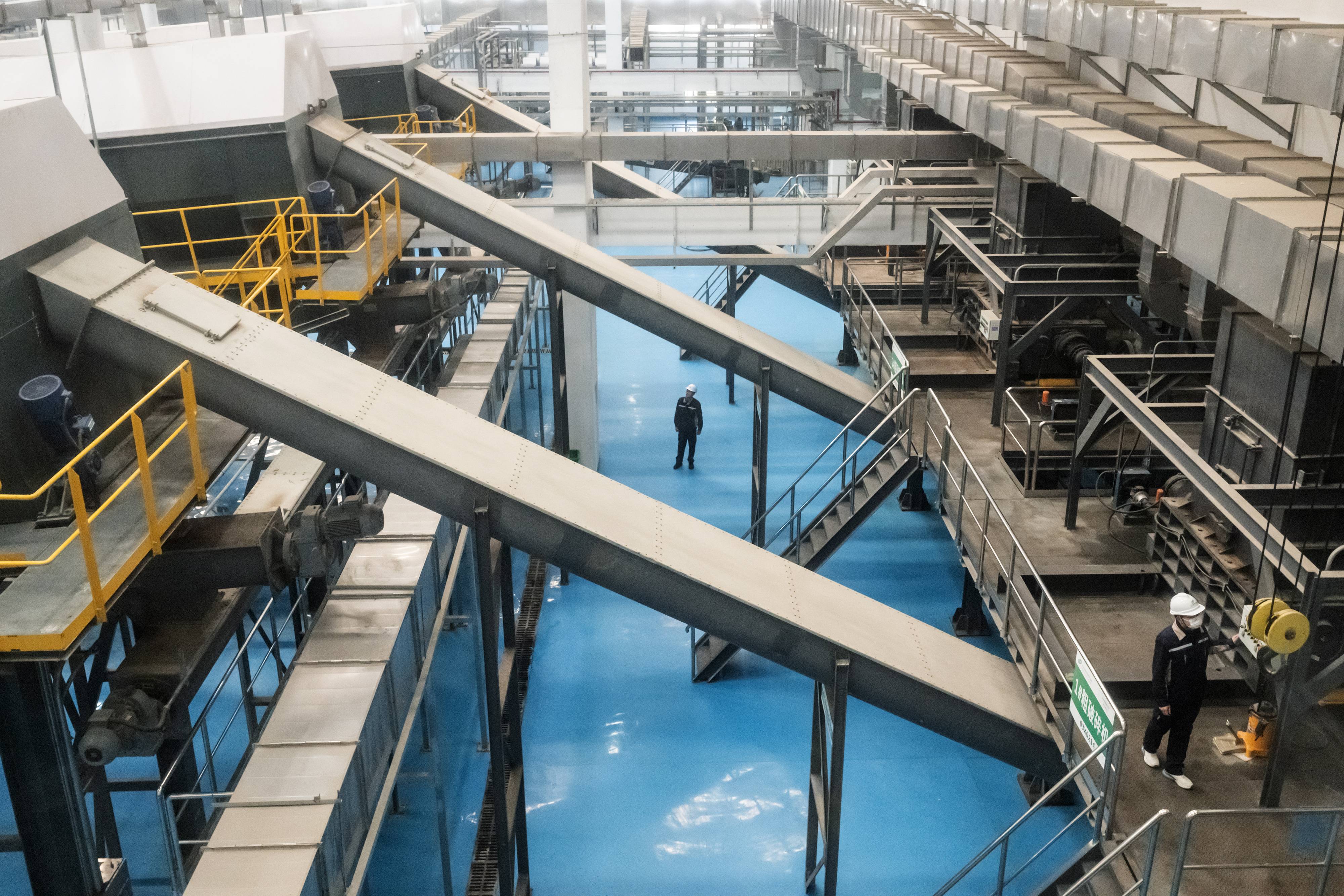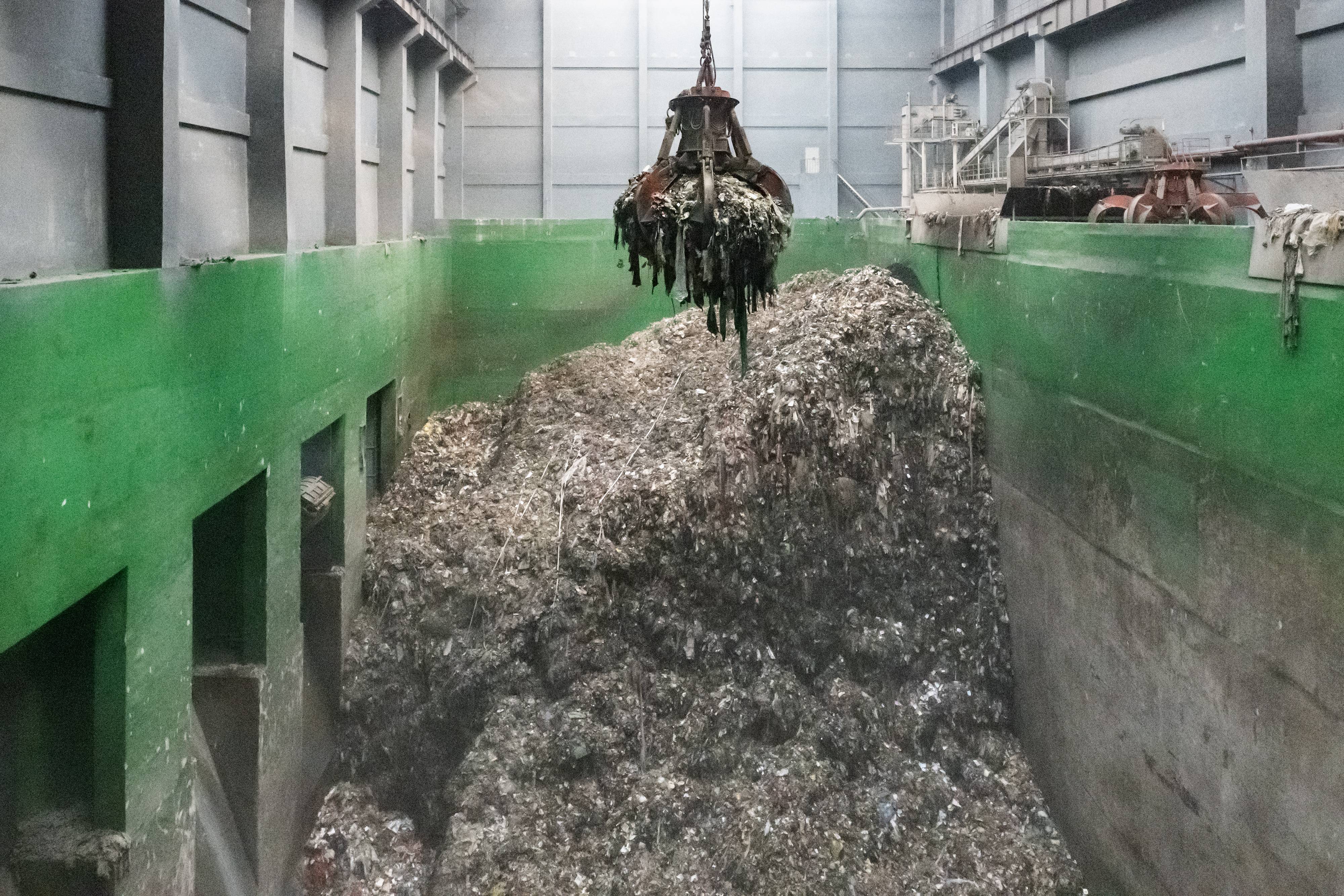 巨型抓斗将生活垃圾投进机械炉排焚烧炉内。 (湖北日报全媒记者 任勇 摄)