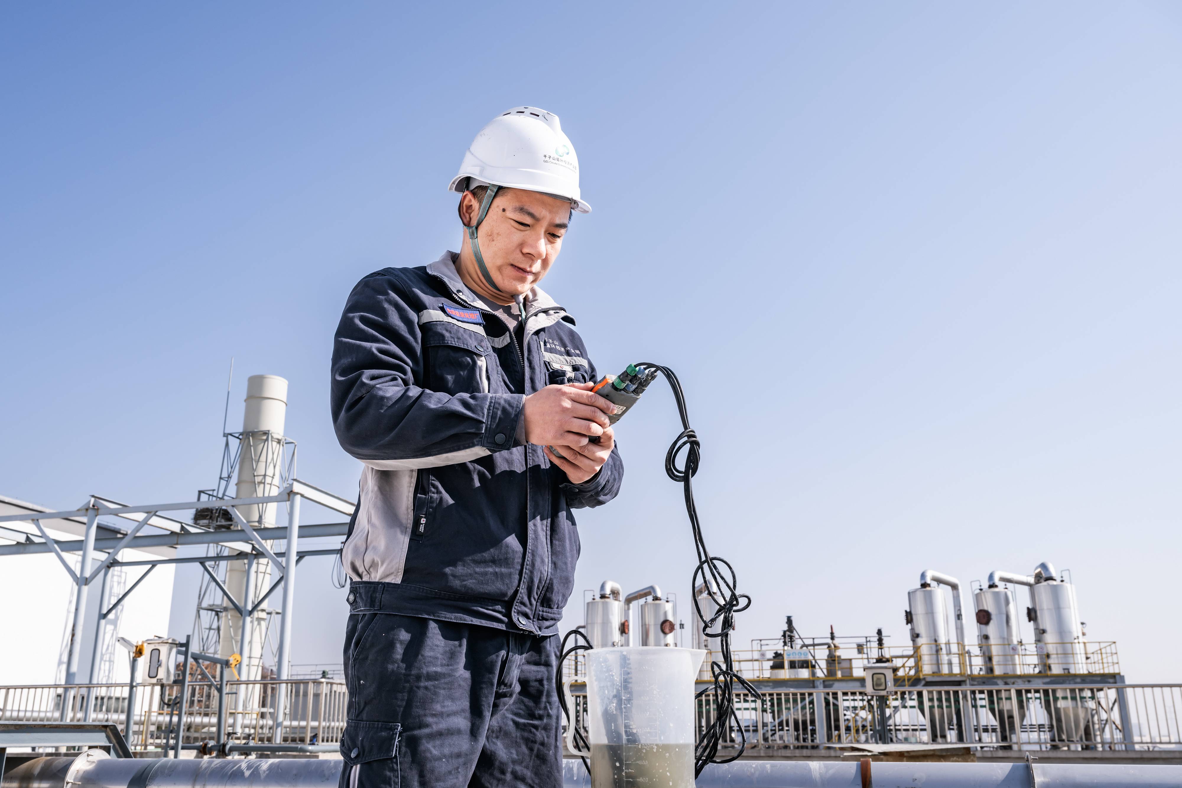 技术人员对污水进行取样检测。 (湖北日报全媒记者 任勇 摄)