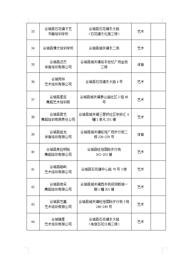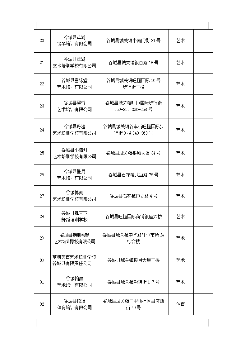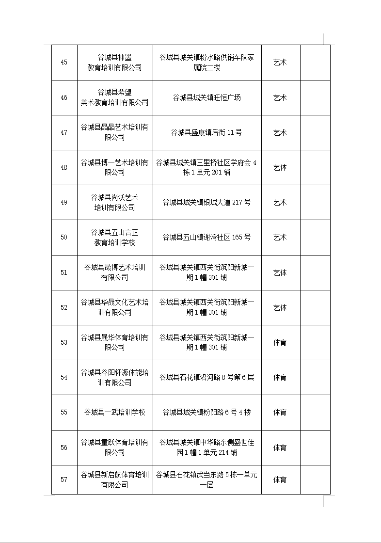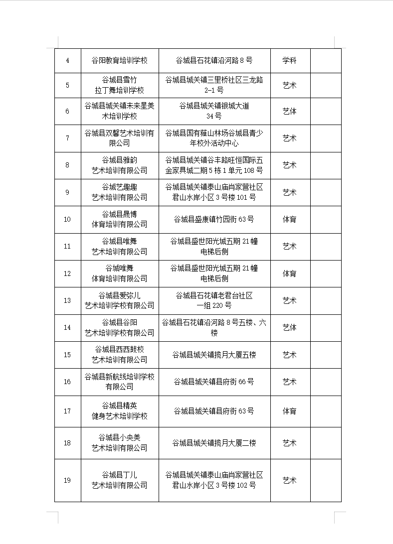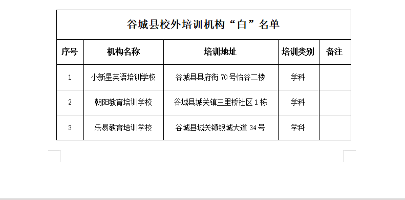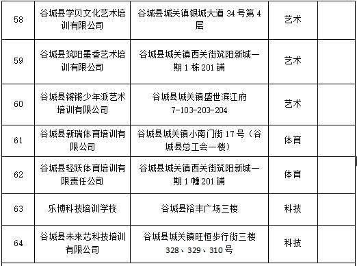 谷城县校外培训机构“白、黑”名单(最新)
