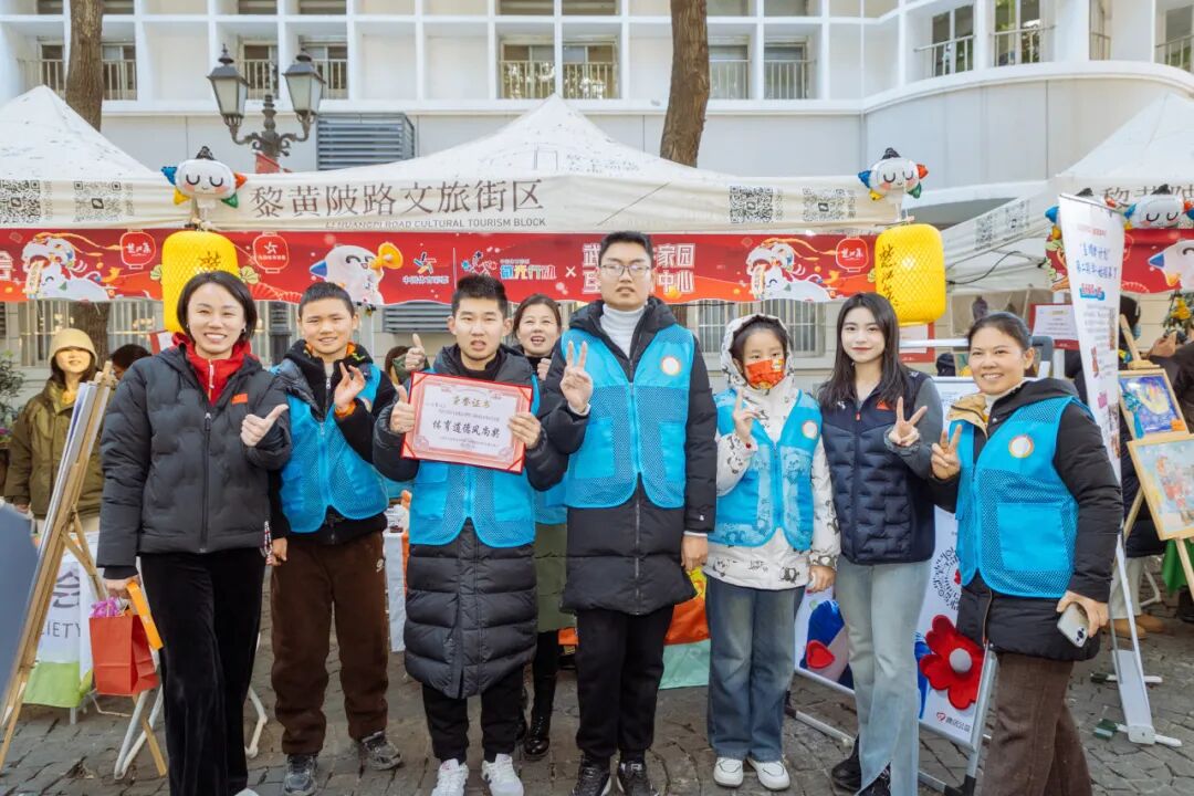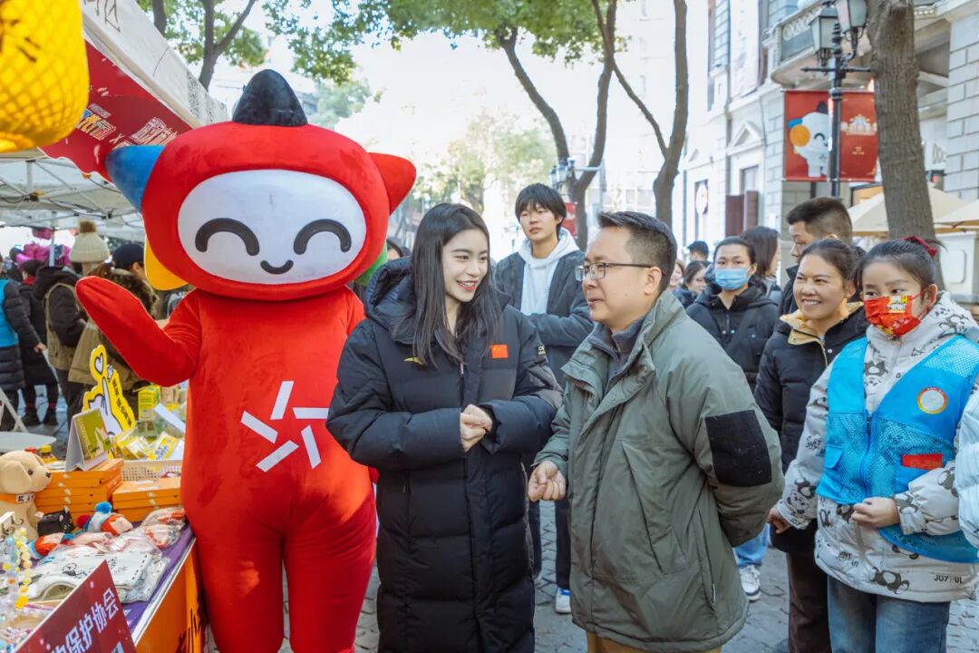 湖北体彩公益形象大使、奥运冠军赵芸蕾、刘蕙瑕现身市集,参观了各个非遗摊位,并了解了每一个社会公益组织,市集上的非遗老师也专门为奥运冠军特别设计了纪念品。在体彩乐小星的陪伴下,奥运冠军与游客们一同游览历史风貌街,记录下新年美好时光,共同分享这份喜悦与幸福。