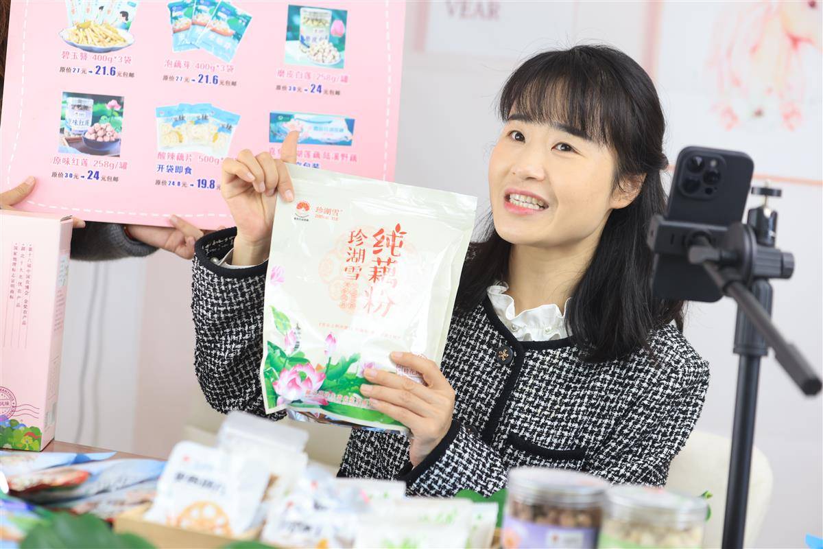 “真是大开眼界,原来一根网线可以连接如此广大的市场!”桂婳立即开始布局。她先是通过各类渠道,让“嘉鱼珍湖莲藕”走进央视段子手朱广权和淘宝带货一哥李佳琦联袂带货的直播间,1分35秒就卖光了21万包泡藕带,货值168万元。随即将泡藕带作为当家产品,在各类电商平台开了38家网店。