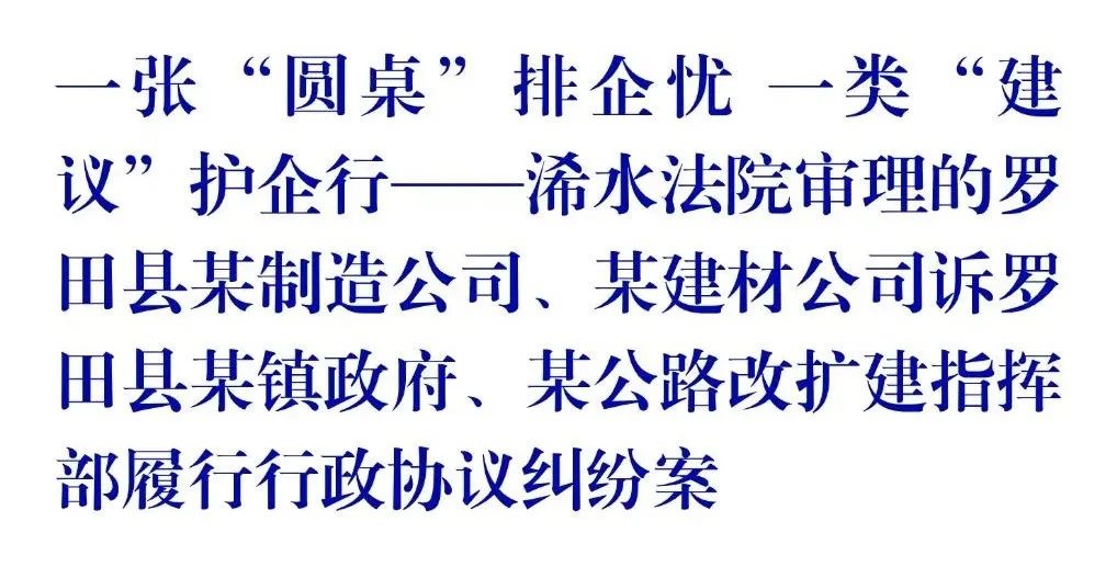为及时化解案涉争议,浠水法院引导当事人前往行政争议化解中心进行“圆桌”化解,罗田县委政法委、司法局等成员单位迅速成立化解专班。某镇政府高度重视,“一把手”主动参与“圆桌”化解程序,释明置换土地未能按期办理建设工程施工许可证的原因,积极征询原告意见,并提出补偿方案。最终各方达成调解协议,某镇政府一次性支付补偿款98万元。浠水法院对该企业进行案后回访,新建工厂已投入使用,补偿款及时用于技术升级和设备改造,企业权益得到充分、及时、有效维护。