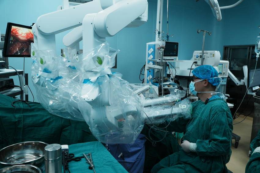 在机器人的精准操控下,代海涛博士熟练地完成了手术的关键步骤。机器人手臂的灵活度和精确度远超人工,能够准确到达手术部位,进行精细操作。同时,机器人还具备智能识别、稳定功能,确保手术的安全性和成功率。