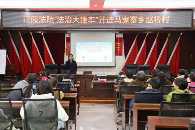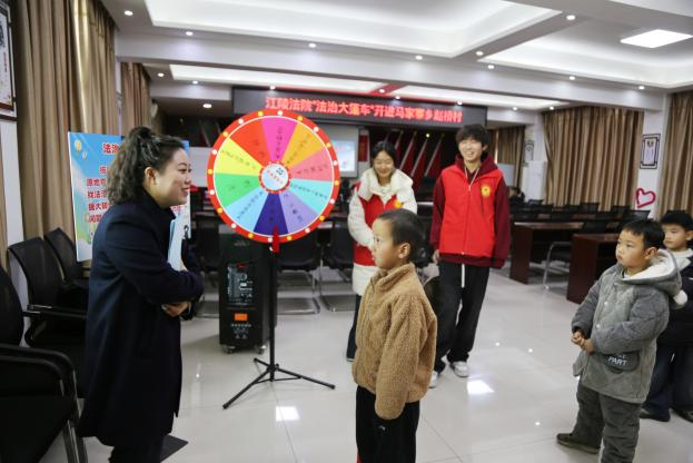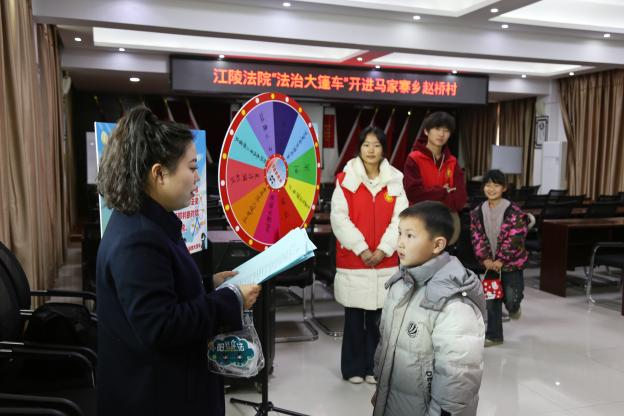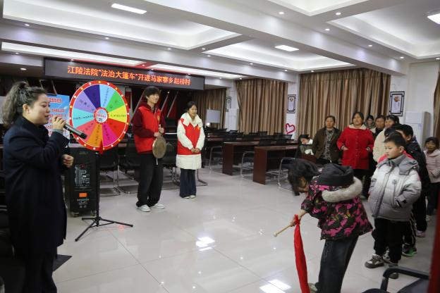 (通讯员 陈柳柳、刘杨琳)1月20日下午,江陵县人民法院“法治大篷车”开到了马家寨乡赵桥村。滩桥法庭干警通过进行一站式、全方位、多形式的法治宣传游戏,寓教于乐,为小朋友们和家长送去了特别的新年“法治知识大礼包”。