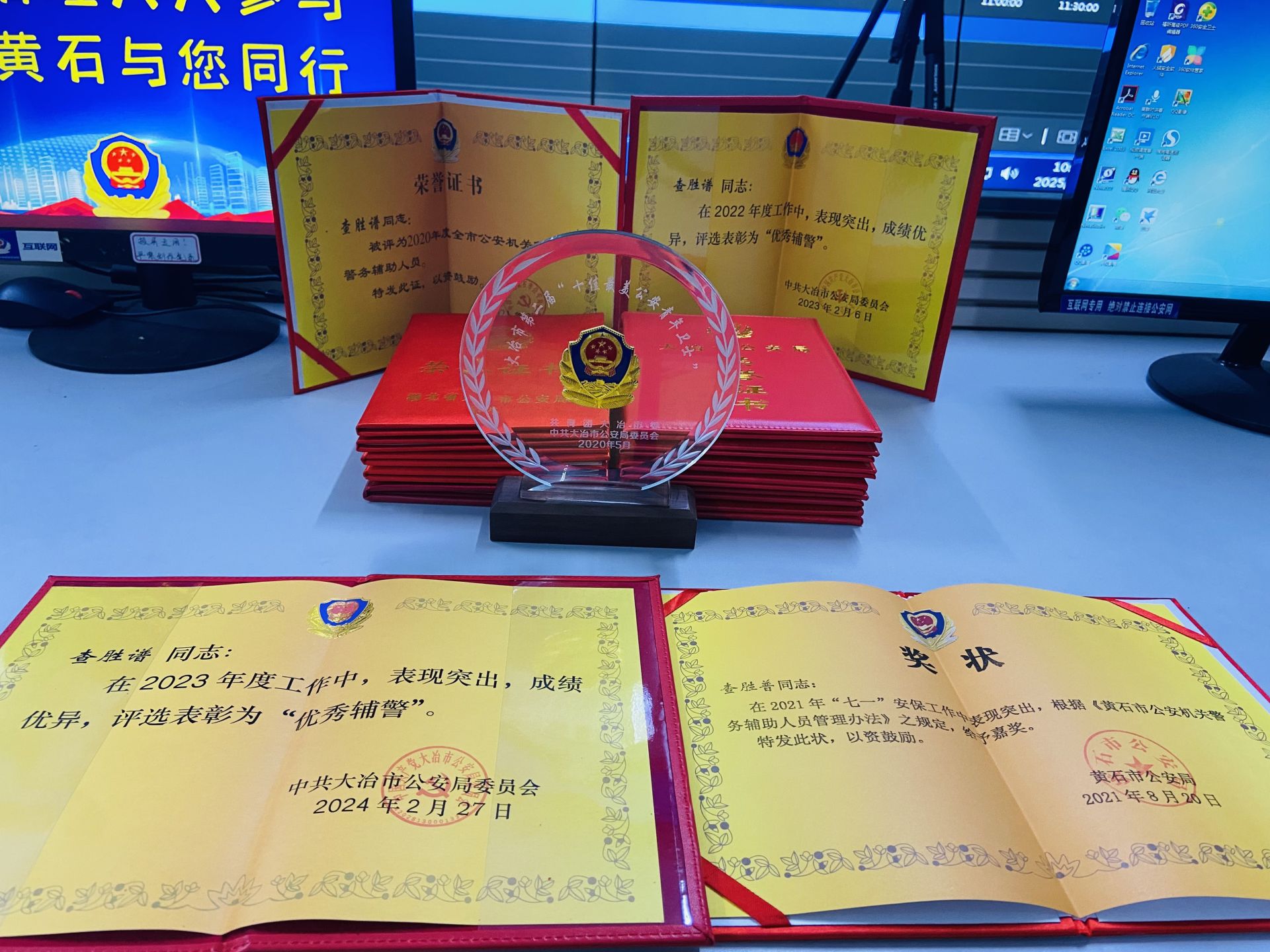 据悉,从警8年来,查胜谱帮助群众找回丢失物品1000余件,协助抓获各类犯罪嫌疑人700余人、破获案件1500余起……他连续7年被市公安局评为优秀辅警;“查胜谱工作室”被评为“青年文明号”;今年1月,他获评2024“荆楚最美基层辅警”。