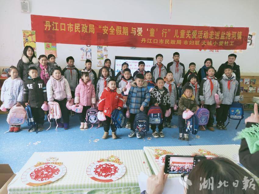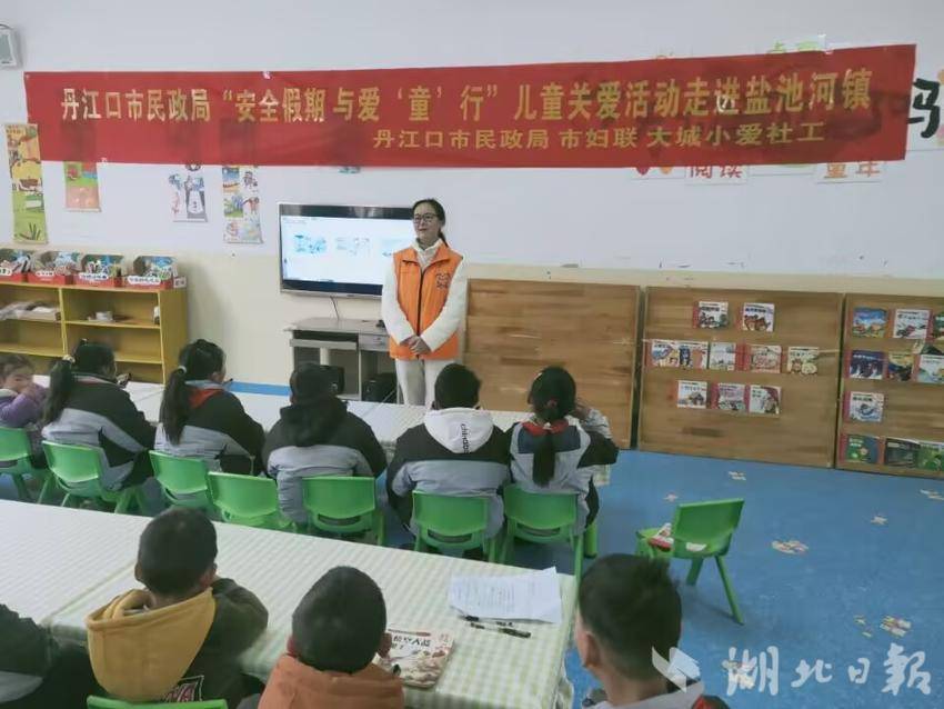 湖北日报客户端讯(通讯员 朱继利 金勋 周洪波)1月23日,丹江口市民政局联合市妇联、大城小爱社工在盐池河镇开展“安全假期”与爱‘童’行”儿童关爱活动,为山区的留守儿童和困境儿童送去关爱和温暖,营造温馨、和谐的成长环境。