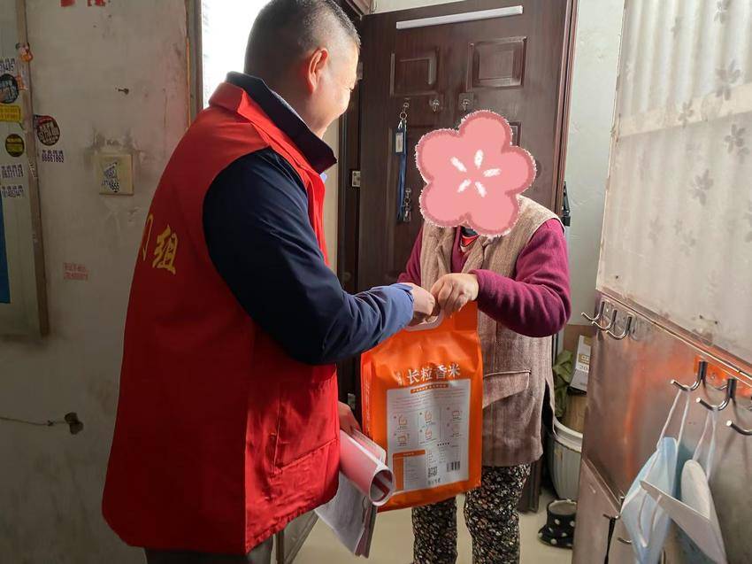 捐赠仪式结束后,根据前期摸排情况,各社区前往困难群众家中,送去冬日的温暖。“感谢党和政府对我们生活的关心,在这么冷的天为我们送这么多东西,今年过得确实不太容易,真的太感谢你们了!”领到慰问物资的张婆婆激动地说。