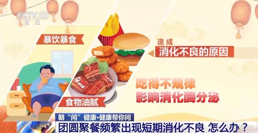 医生介绍,除了暴饮暴食、食物油腻等饮食问题,吃的不规律也会影响消化酶的分泌,导致消化不良。此外,胃是人体的情绪器官,过节期间过于兴奋也容易引起胃肠不适。