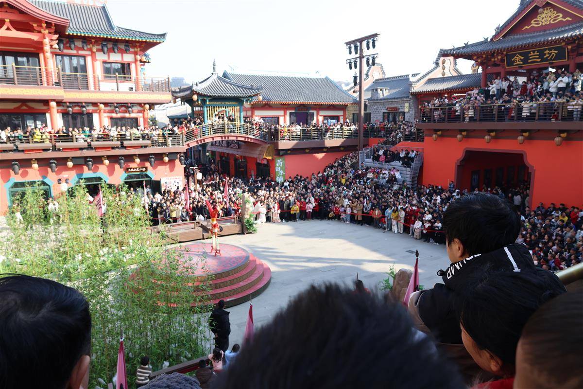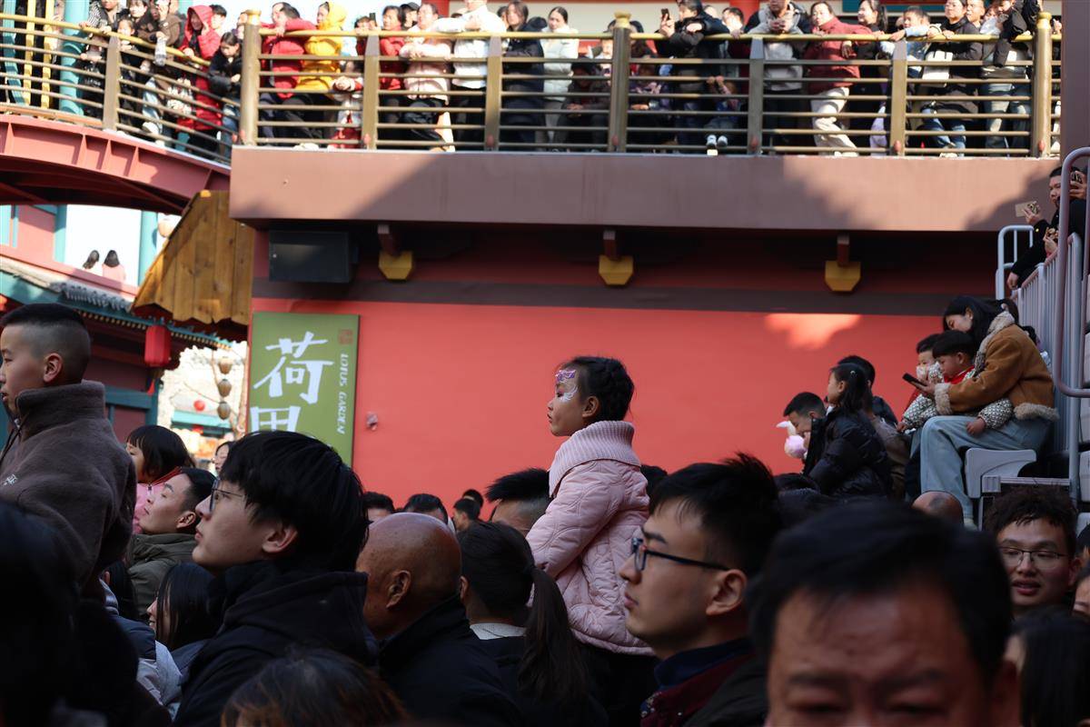 看大戏,逛大街,赏民俗。吴都乔街景区里人山人海,摩肩接踵。到了下午,吴都乔街四周的道路十分拥堵,鄂州市公安局紧急调派民警增援,维持交通秩序。