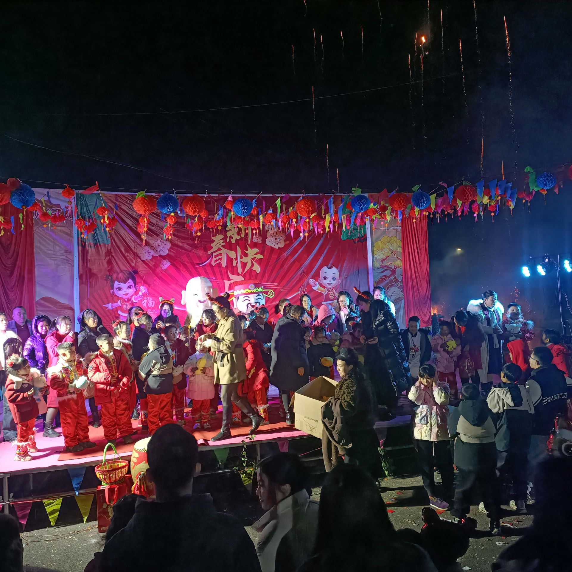湖北日报客户端讯(通讯员曾邦勇)28日晚7时,正值除夕夜,阳新县黄颡口镇太平村太平张湾文化广场上燃烧起两堆熊熊大火,该湾第二届“村晚”在激情燃烧的火光下闪耀开场。