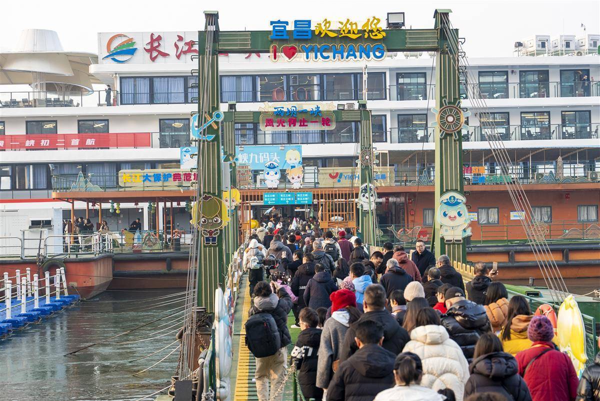 1月30日(正月初二)宜昌两坝一峡游轮新年首航,现场游人如织。(湖北日报全媒记者 邓云 摄)