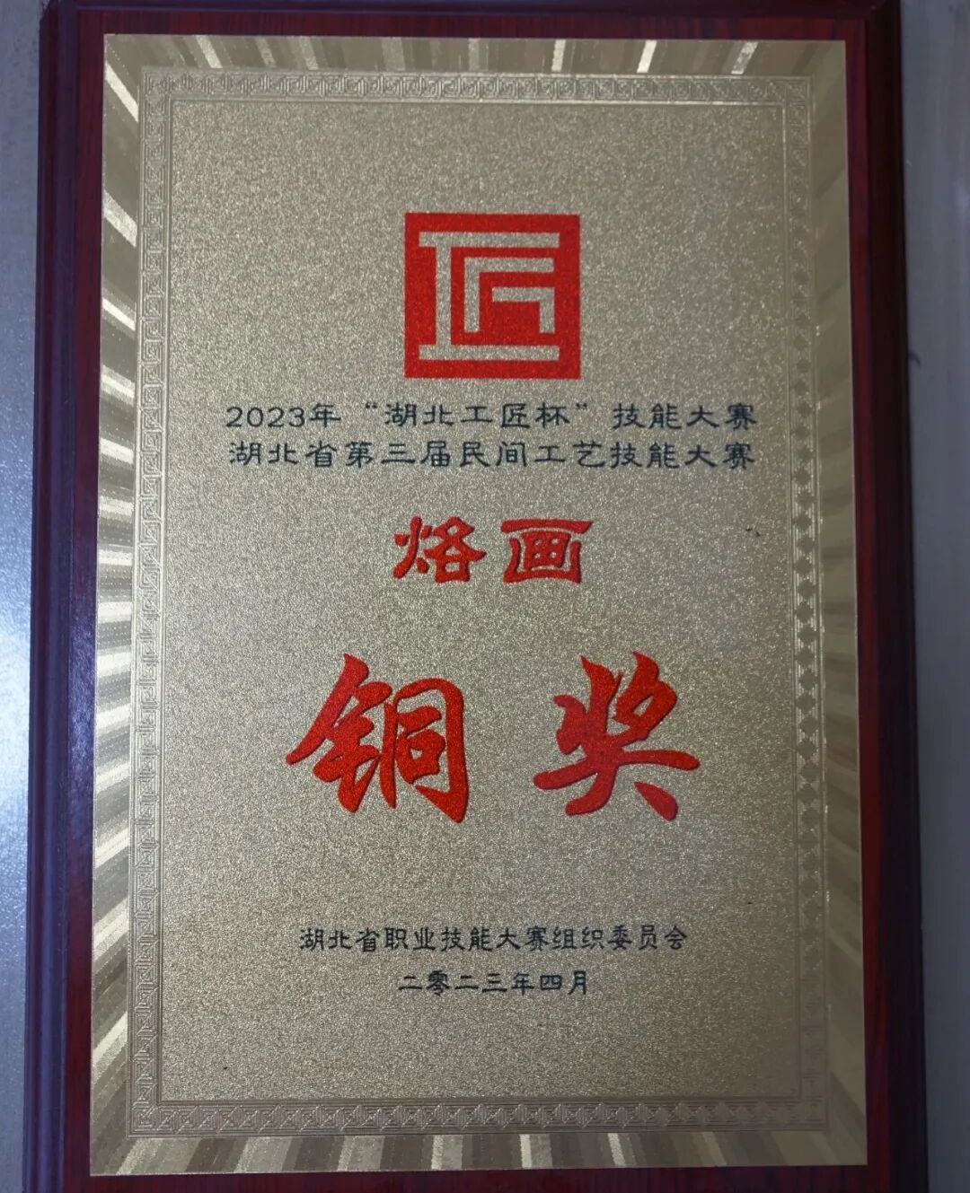 简昌玉,女,江陵县人,湖北省工艺美术协会会员,荆州市工艺美术协会会员。学习烙画10多年,2015至2017年拜湖北烙画传承人张远龙为师,后又前往武汉到烙画大师蒋谌华工作室学习现代烙画技法。获“湖北工匠杯”技能大赛烙画项目获铜奖。