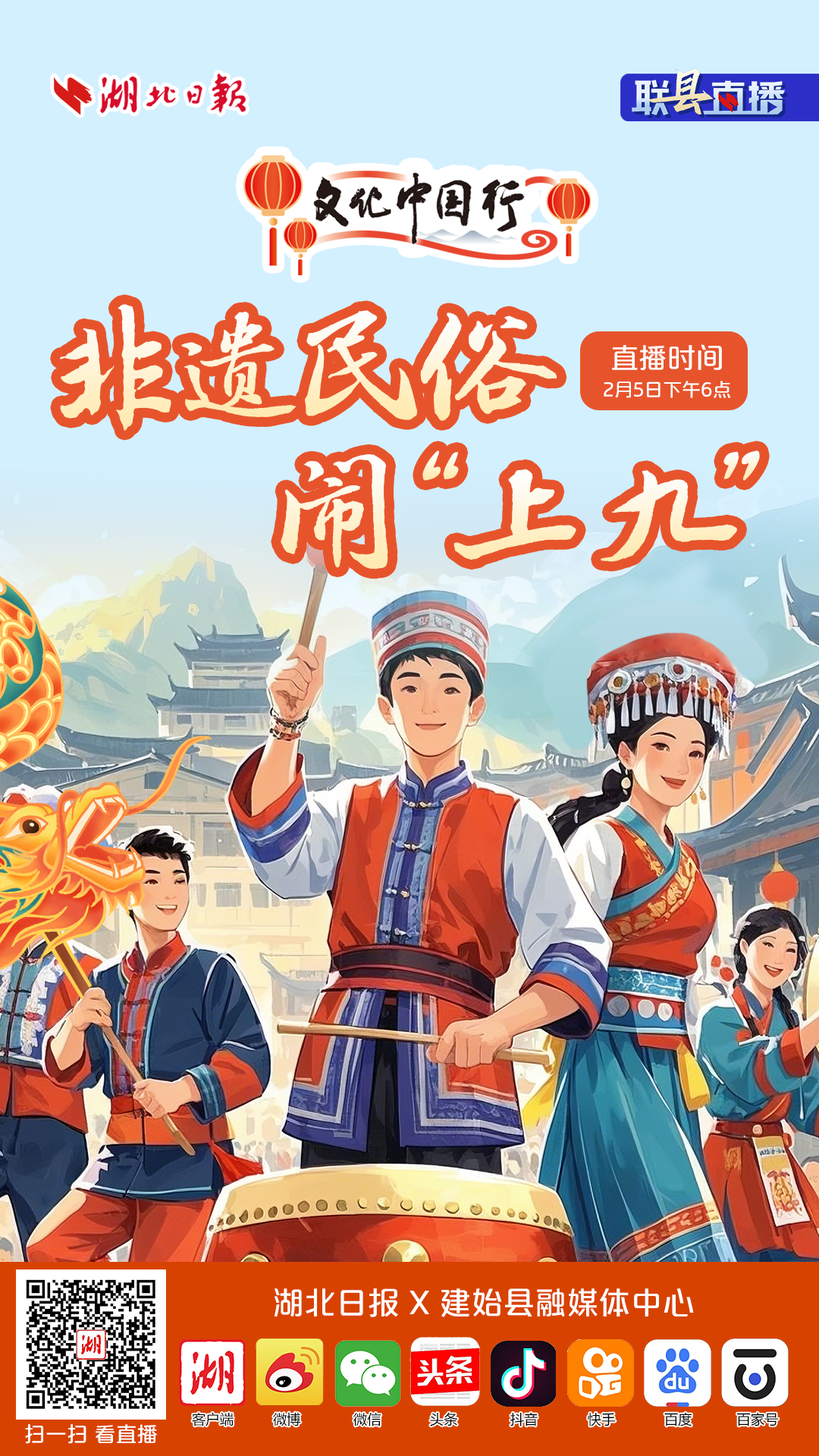 2月6日,农历正月初九,在恩施土家族地区,这天被称为上九日。古时人们以九为尊,寓意数目之极、繁盛之巅,须隆重庆祝。2月5日(正月初八),建始县高坪镇举行非遗民俗活动,欢庆“上九”,喜迎新春。