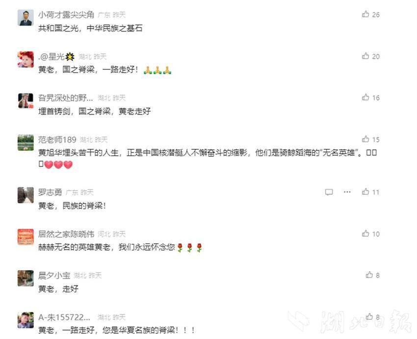网友“依然”留言说:“黄老,您一路走好!致敬国之脊梁!”