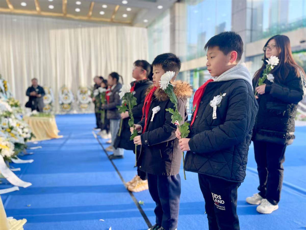 “黄爷爷,您一路走好!”一大早,一群小学生手持白菊来到吊唁现场,他们来自武汉市武昌区中山路小学。