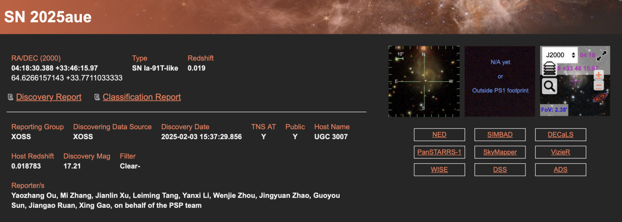 TNS页面链接:https://www.wis-tns.org/object/2025aue