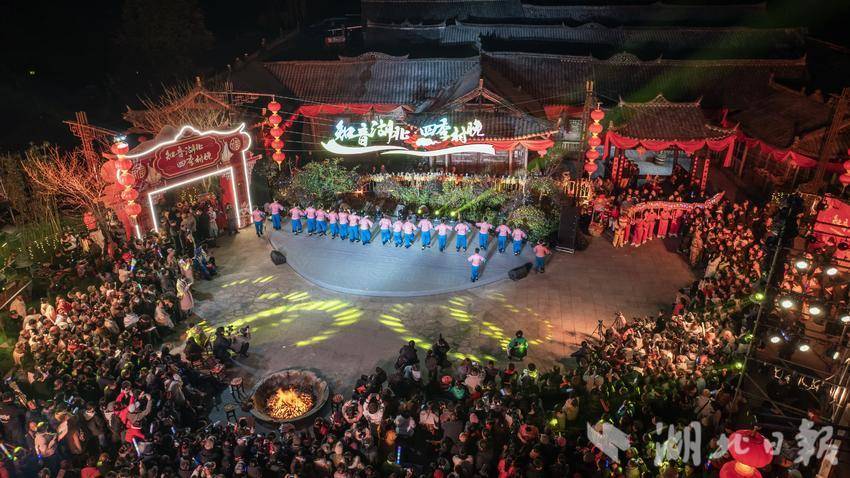 2月11日,恩施市盛家坝镇二官寨村举行2025年全国春季村晚示范展示暨二官寨村第十二届元宵惠民展演活动,五千余名游客欢聚一堂闹元宵。二官寨村已连续十一年举办元宵节群众文化活动,号召群众“唱起来、跳起来、动起来”,群众自发组建情景剧、腰鼓、连响、广场舞等文化志愿队伍,精神文化生活日益丰富。(视界网 文林 张远明 摄)