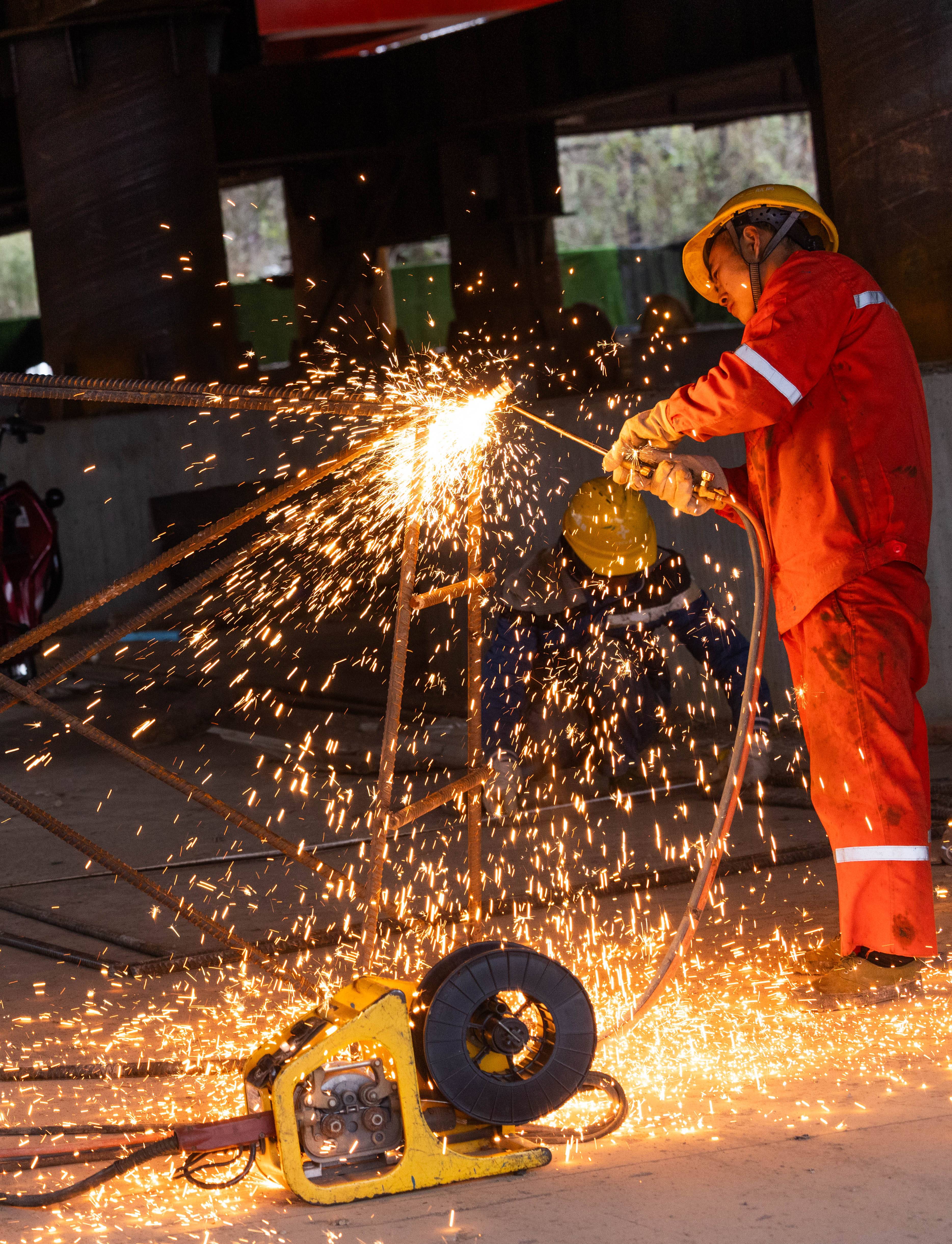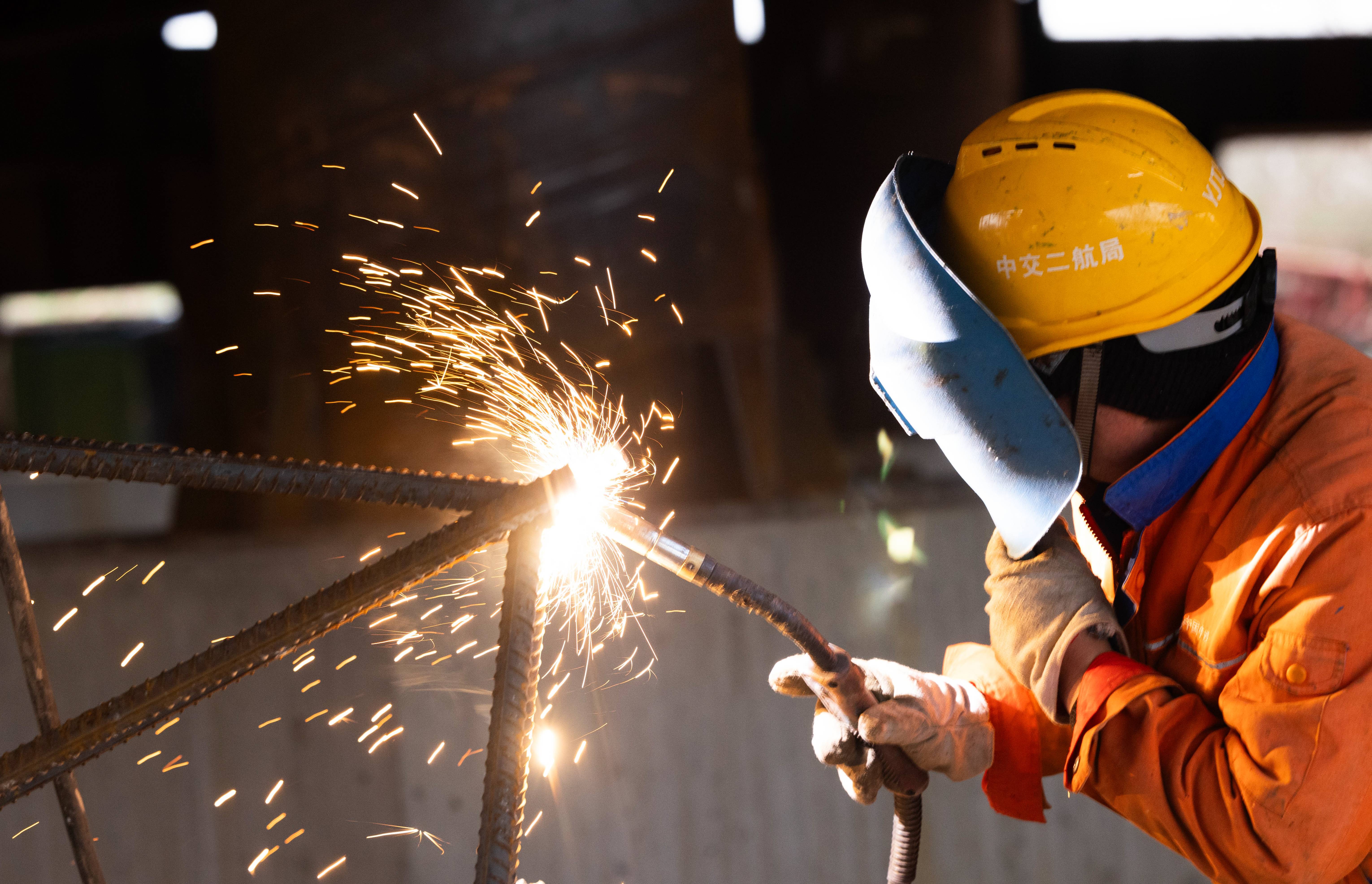 2月11日,燕矶长江大桥鄂州侧,工人正在忙碌。