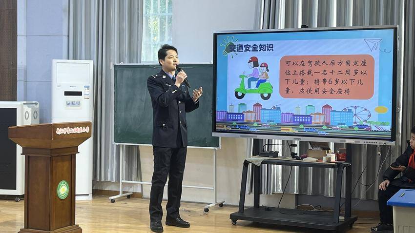 从“如何安全过马路”到“乘坐电动车佩戴头盔的必要性”,从“认识交通标志”到“远离车辆盲区”……民警结合案例讲解、情景模拟,引导同学们树立文明交通安全意识,提高自我防范能力。