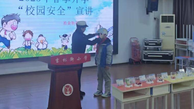 青山区交通大队的安全课堂上,女民警刘敏化身“安全使者”,为吉林街小学橙园校区的同学们送上精心准备的儿童安全头盔。这些头盔色彩鲜艳,图案可爱,深受小朋友们的喜爱。随后,民警又耐心地为大家讲解头盔的正确佩戴方法,通过现场演示,让小朋友们直观地了解到头盔在保护头部安全方面的重要作用。