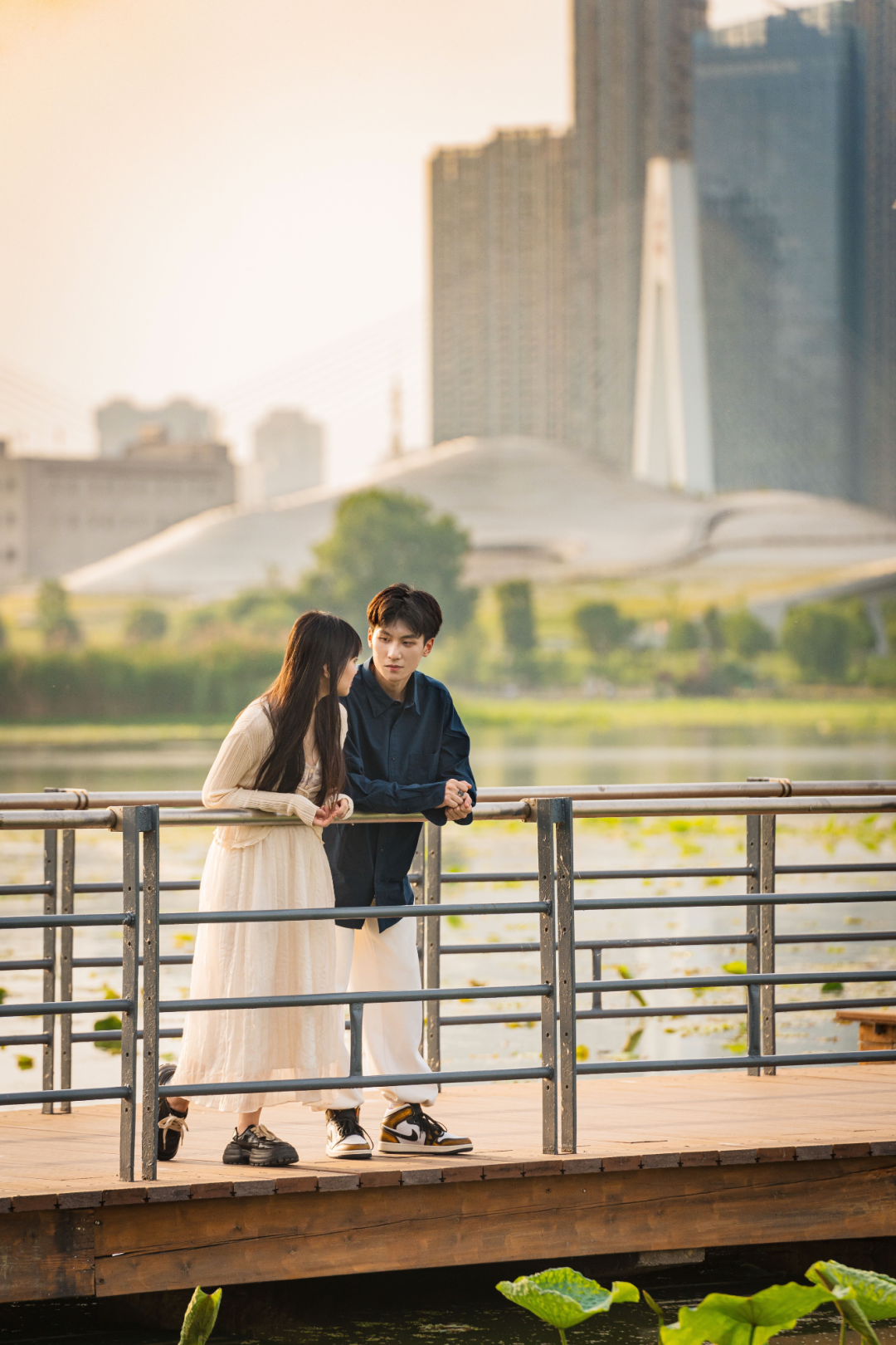 粼粼波光映照着恋人间的低语,那些藏在眼眸里的温柔,被湖水悄悄记录;城市的喧嚣化作背景音,相偎的身影与天际相融,定格成永恒的浪漫。