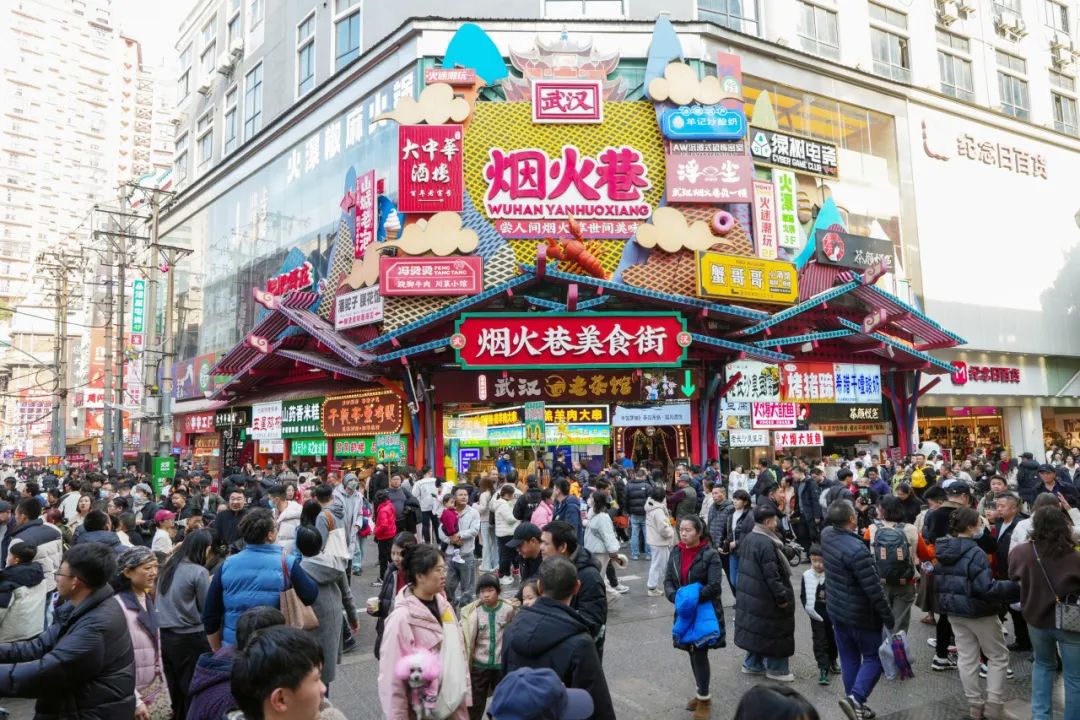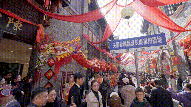 不仅是“天下第一步行街”,更是一座“露天老建筑博物馆”,吃喝玩乐一应俱全,今年街区设置了总台春晚武汉分会场打卡装置,过年来这儿碰头合影。