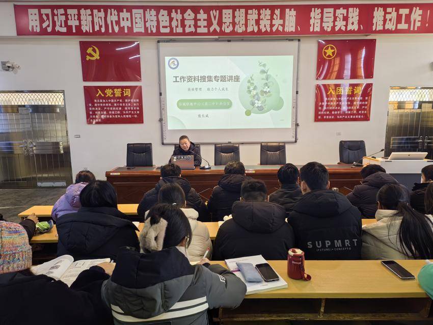 学校办公室主任张长成围绕工作材料搜集,强调了材料管理的重要性,分享了实用的工具和方法,帮助教师们掌握如何高效搜集、整理和归档工作材料。