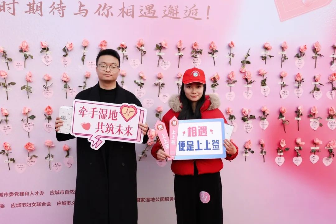 湖北日报客户端讯 (通讯员 张梓杰 杨静平)2月16日,湖北孝感老观湖国家湿地公园内欢声笑语不断,由应城市主办的“相约湿地 共筑未来”青年联谊活动在此举行,100名来自应城全市机关企事业单位的单身青年齐聚湿地,共同庆祝第29个“世界湿地日”,以趣味互动传递“尊重自然、保护湿地”的生态文明理念,用青春热情点燃湿地保护的火种。湖北省林业局野保湿地处副处长程绍勇、孝感市自然资源和城乡建设局副总督察长杨亮、应城市人民政府副市长盛必胜等参加活动。