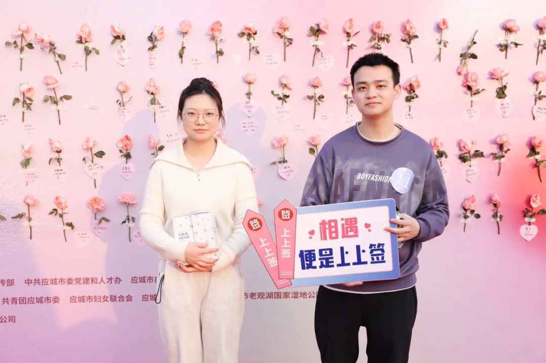 浪漫气氛烘托下,本次活动共成功牵手6对嘉宾,他们在鲜花墙前互换号码牌并添加微信,邂逅属于自己的缘分。