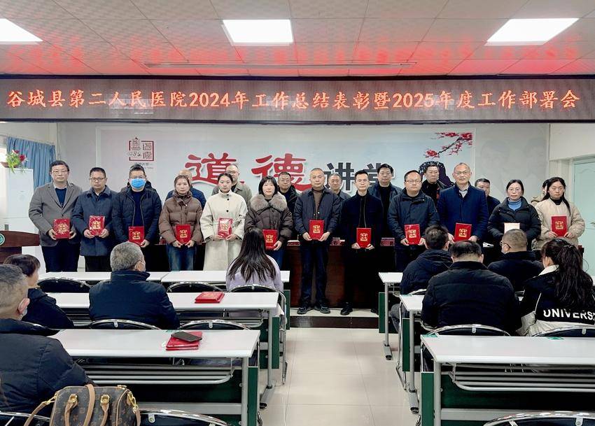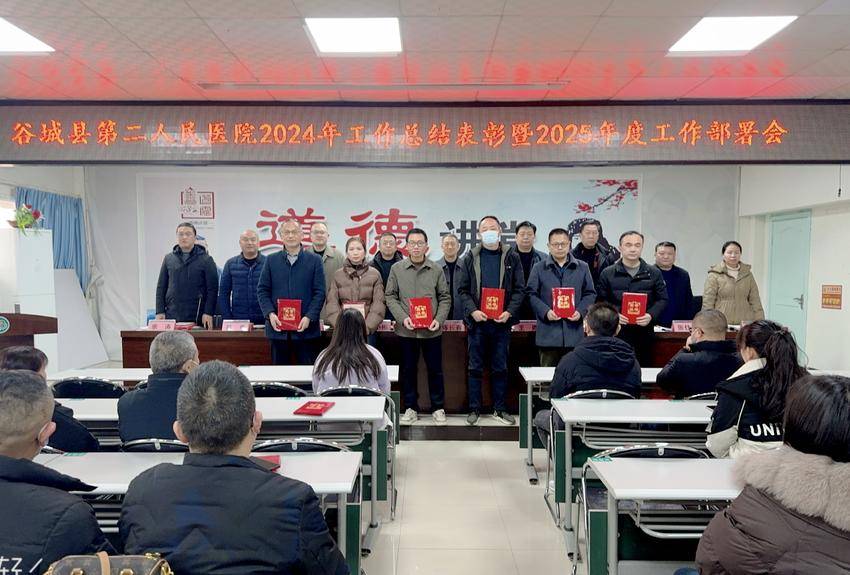 湖北日报客户端讯(通讯员袁丽君)2月14日,谷城县第二人民医院在外科楼八楼会议室召开2024年度工作总结表彰暨2025年度工作部署会。医院党政领导班子成员、全院干部职工参加会议。会议由党委副书记、副院长严小彬主持。