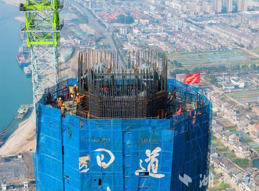 2月16日,宜昌枝江长江大桥建设现场一片繁忙,建设单位采取“白加黑24小时轮班制”加快进度。枝江长江大桥是湖北当枝松高速公路的控制性工程,主桥全长1549米,主跨890米,双向六车道,是目前世界最大跨径双塔单侧钢-UHPC组合梁斜拉桥,预计2026年建成通车。(视界网 王耿 摄)