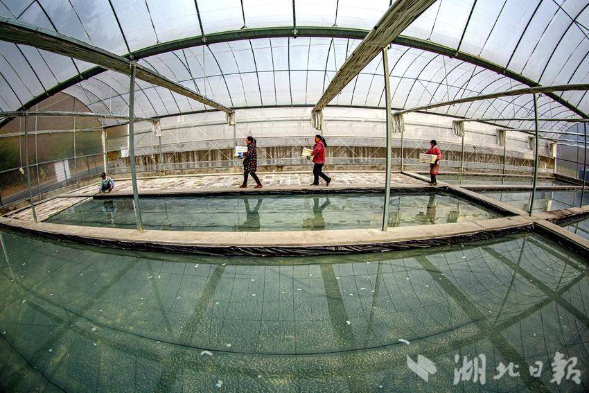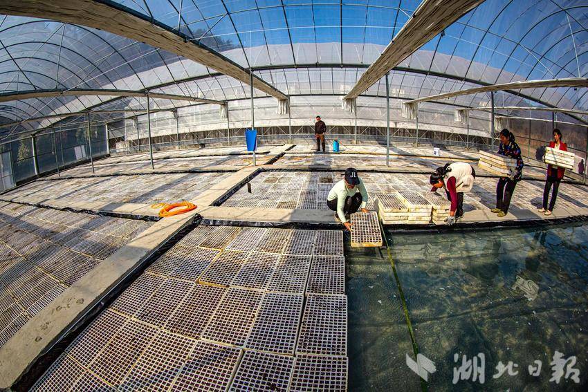 2月15日,在竹山县深河乡双湾村温室大棚里,村民正在搬运烟叶育苗盘。近年来,竹山县积极引导村民大力发展烟叶种植,通过推广优良品种、完善种植产业链、加强技术培训等举措力促烟叶产业稳产提质,带动群众持续增收致富,助力乡村振兴。(视界网 章磊 摄)