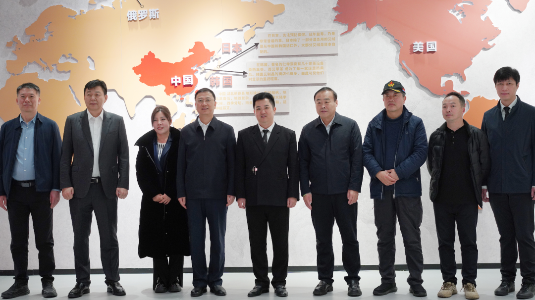 杨明一行实地参观了蕲艾集团产品展厅、文化中心、生产车间等,详细了解了蕲艾集团在艾草种植、产品研发、品牌建设、市场推广等方面的成功经验,对集团在推动蕲艾产业发展、助力乡村振兴方面取得的成就给予了高度评价。