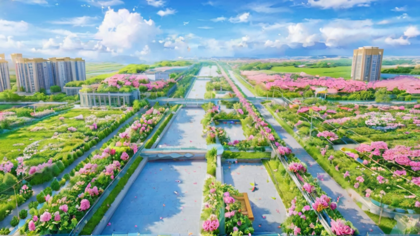 当AI遇见春光,团风的地标建筑恍若如梦初醒,纷纷幻化为翩翩的“花仙子”,在春风中轻舞,绽放着无尽诗意与画意。春天就这样在团风的街头巷尾温柔地蔓延开来,一砖一瓦都被春色拥抱,繁花似锦,生机盎然。