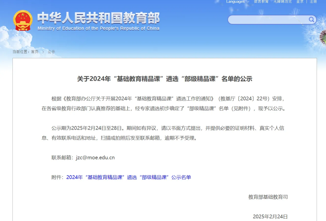 “基础教育精品课”遴选活动由教育部组织开展,旨在汇聚优质教学资源、促进教师专业发展,提升教育教学质量。活动自开展以来,全国各地教育工作者广泛关注并积极参与。此次评选,标准高、程序严,经过教师自主申报、学校推荐、区级初选、省市遴选以及部级遴选等层层选拔,最终确定“部级精品课”名单。