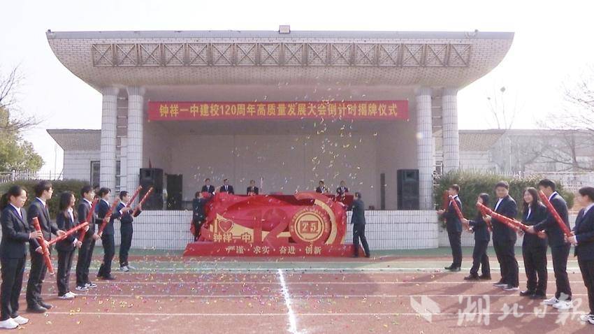 湖北日报客户端讯(通讯员肖蒙雨、李含嫣、谭金枝)3月7日,钟祥市第一中学隆重举办建校120周年高质量发展大会倒计时揭牌仪式。全校师生共同见证这一激动人心的时刻,拉开了120周年校庆的序幕。