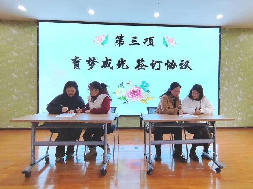 青蓝结对薪火传,同心共育促成长。为了加快青年教师队伍建设,我园联合共谊幼儿园举行了“三八青蓝工程”师徒结对活动,园领导宣读师徒结对名单、方案,师徒双方签订协议,拜师敬茶,明确职责,携手同行,共同探寻成长之路,朝着理想,不负韶华,馥郁芬芳。