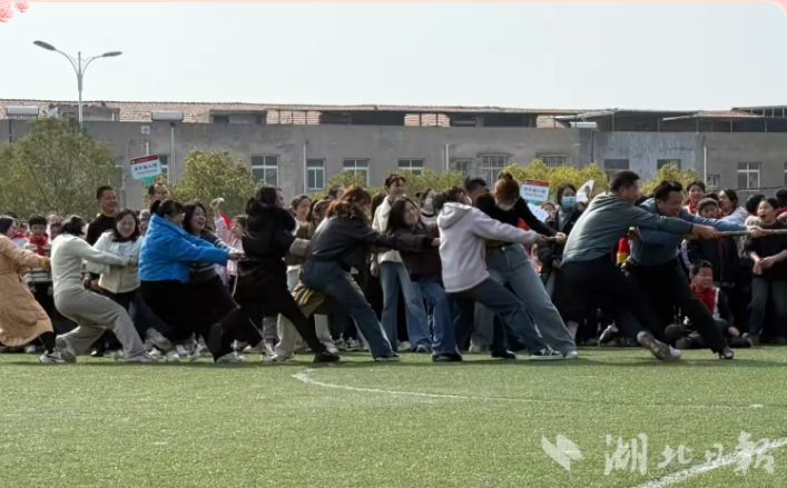 湖北日报客户端讯(通讯员姜莉娅)近日,汉川市沉湖镇福星小学以一场别开生面的教职工拔河比赛,庆祝“三八”国际妇女节。4支由各年级女教师及少数男教师混编的队伍在绿茵场上展开力量与默契的较量。