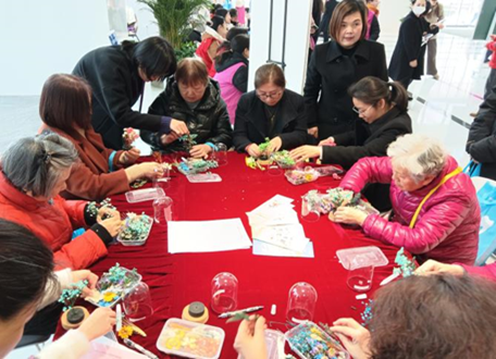 趣味游戏区内的幸运套圈、趣味保龄球等互动游戏让现场欢声笑语不断,气氛热烈。而在“永生花”DIY区域,志愿者老师现场演示永生花制作技巧,女同胞们在老师的指导下交流互助,创作出精美且富有寓意的“永生花”作品,纷纷拍照留念,留下了美好的回忆。