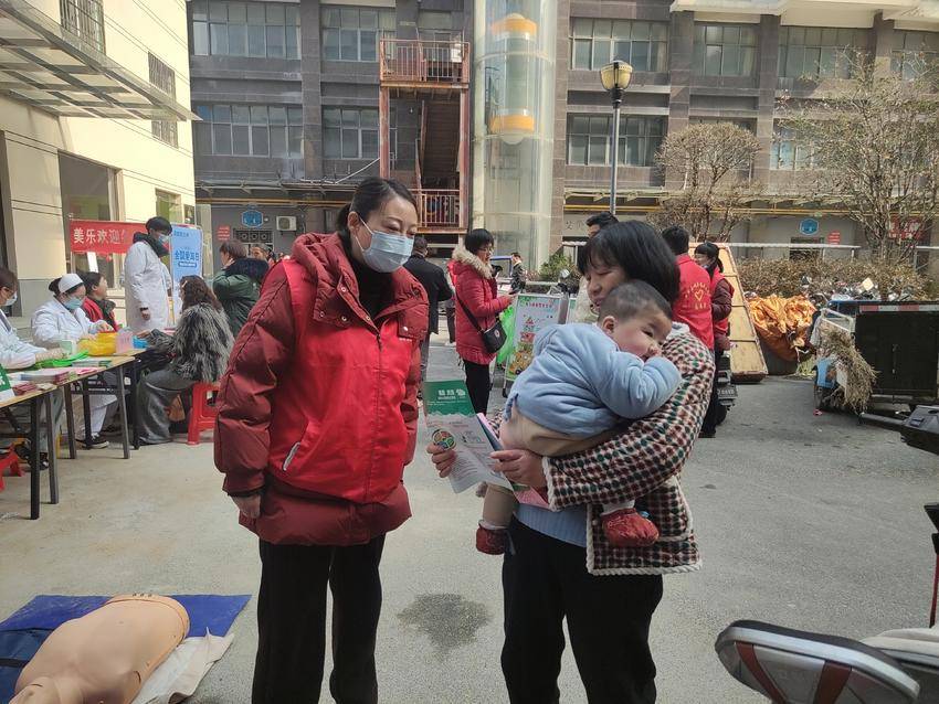 与此同时,楚王城小区里热闹非凡。女队员们的应急救护和安全知识普及活动吸引了众多居民参与。她们通过生动形象的讲解和现场演示,向居民们传授心肺复苏、海姆立克急救法、外伤包扎等急救技能。针对日常生活中可能遇到的火灾、触电、溺水等安全问题,女队员们详细地讲解了预防措施和应对方法。在互动环节,居民们纷纷踊跃上台,在女队员的指导下进行急救实操练习,现场学习氛围浓厚。一位大爷在体验完心肺复苏操作后,感慨地说:“这些知识太重要了,说不定哪天就能派上用场,真的感谢这些女同志!”