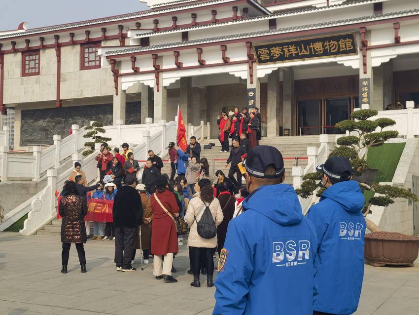 在云梦县博物馆,男队员们早早到位。他们身着统一队服,精神抖擞地分布在博物馆的各个出入口、展厅通道,引导游客有序参观,耐心解答游客的疑问,帮游客拍照,为游客引路提供贴心的服务。面对络绎不绝的人群,队员们始终保持高度的专注和热情,确保了博物馆内秩序井然,为游客营造了一个安全、舒适的参观环境。游客们纷纷表示:“云梦蓝天救援队的队员们十分专业、尽责,有他们在,我们特别安心。”