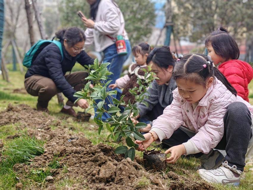 活动现场,在工作人员的指导下,社区的孩子们与家长携手合作,一起铲土、栽种、浇水,每个步骤都有条不紊,其间温馨互动不断,一棵棵承载着希望的植物被成功种下。这些植物不仅为小区增添了一抹清新的绿色,也让生命力旺盛的种子扎根在孩子纯真的童年沃土中。