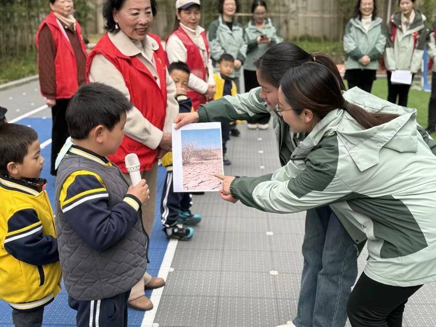 “我们要做地球的小卫士,保护每一片绿叶!”植树活动开始前,孩子们用稚嫩却坚定的声音宣读着环保倡议书。东园区中一班的孩子们也带来了活力四射的舞蹈《爱跳舞的小可爱》,用纯真的笑容和欢快的舞姿,为活动增添了一抹亮色。幼儿园赵老师则通过展板和宣传册,生动地讲解了垃圾分类、节能减排、水资源保护等方面的环保知识,倡导绿色生活方式,大家纷纷表示将积极践行绿色发展理念。