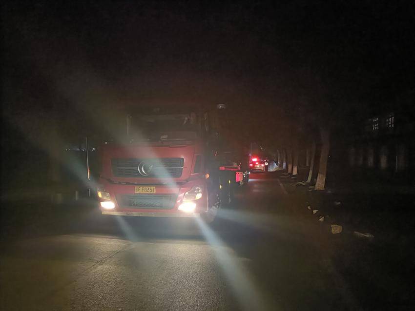 在紧张的救援过程中,每一个指令、每一个手势都至关重要。货车司机全神贯注地盯着两侧的交警,小心翼翼地操作着方向盘,缓慢向后倒车。夜色中,警灯闪烁,交警们的身影在车灯的映照下格外醒目,他们的声音穿透夜色,精准地传递给货车司机。尽管倒车过程困难重重,但在交警们的耐心引导下,货车一点点地向后挪动。