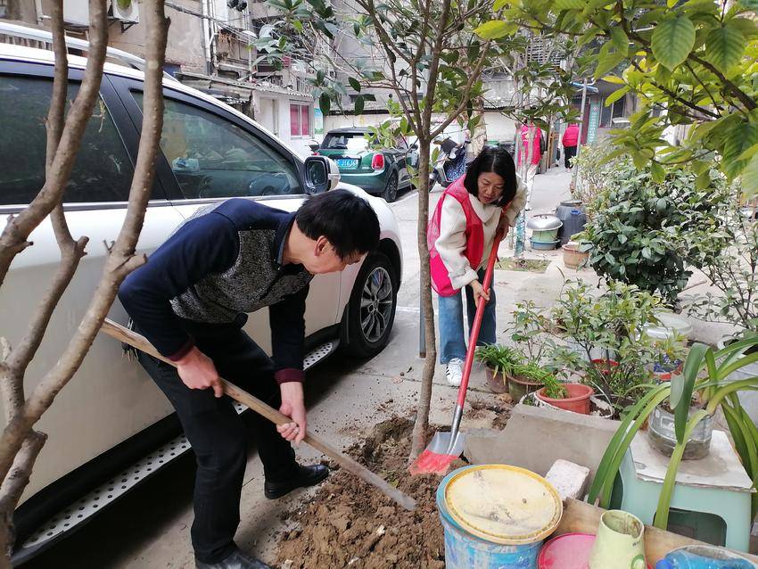 参与活动的各界人士热情高涨,纷纷拿起工具投入到植树活动中。大家分工协作,将枯死的树木挖出后又挥锹挖坑、扶苗培土、浇水灌溉,现场一片热火朝天的景象。经过两个多小时的辛勤劳动,新栽种的树苗整齐排列,为小区增添了一片新绿。