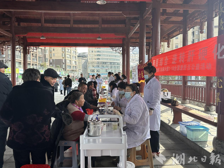 湖北日报客户端讯(通讯员杨阳)为深入贯彻落实健康中国战略,提升广大市民对肝脏疾病的认知水平,增强居民的健康意识,3月18日上午,利川市民族中医院携手利川市都亭社区卫生服务中心、龙船调社区,在龙船调公园北广场中医药文化体验馆开展了“中西医结合、逆转肝硬化”主题义诊活动。此次活动旨在充分发挥中西医结合的优势,为肝脏疾病患者提供更优质、更全面的医疗服务。