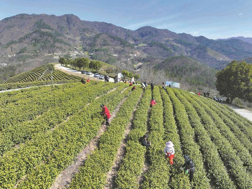 3月18日,天气晴朗,保康县部分茶园迎来春茶开采季。