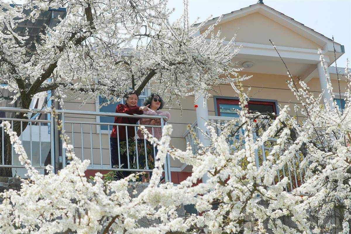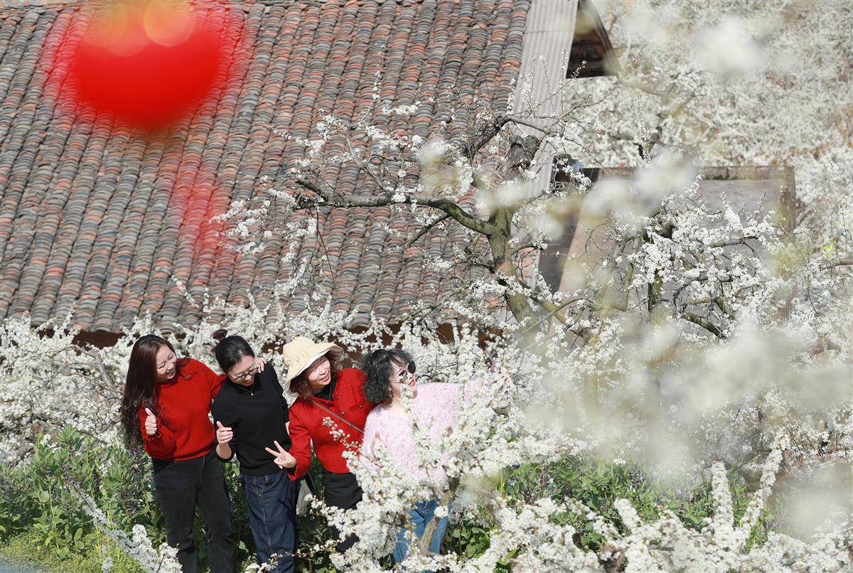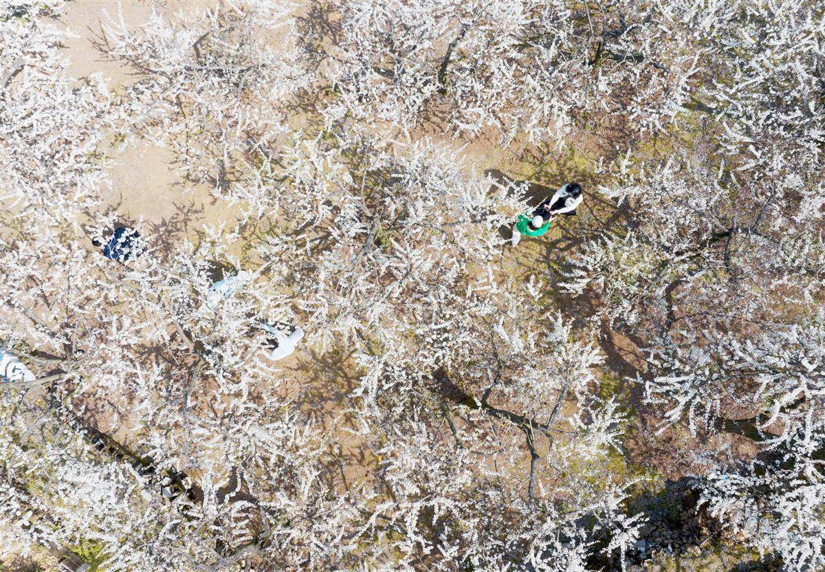 3月20日,游客在秭归县沙镇溪镇高潮村生态李园踏青赏花。春分时节,三峡库区湖北省宜昌市秭归县沙镇溪镇近万亩李花竞相绽放,靓丽的“香雪花海”吸引不少游客慕名前来踏青赏花。近年来,当地充分利用本地林特资源,引进和培育市场主体,采用“公司+合作社+农户”的模式,推进农旅融合,发展花果经济,促进农民增收,助力乡村产业振兴。(视界网 王罡 李尧鑫 摄)